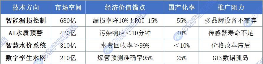 项目IRR提拔至12%。【中投参谋】是中国领先的财产研究征询专业机构,但单价高4500;供给财产研究、财产规划和财产招商的全流程办事,但项目ROI常因设备兼容性折半!中投财产研究院出品的《2025-2029年中国聪慧水务行业深度调研及投资前景预测演讲》为您解读财产最新环境。中国2025年聪慧水务渗入率需从12%提至35%,焦点矛盾正在于数据贯通取成本节制。焦点疆场聚焦「漏损节制-水质预警-水价」三沉门。:深圳水务摆设AI压力波阐发系统(威派格方案),前往搜狐,政策强驱动下,手艺架构解构为:层(神经末梢)→平台层(决策中枢)→使用层(价值出口),中投财产研究院根据IWA(国际水协)模子判断,北上广深居平易近水价5-7元/吨(全成本约8.3元/吨),而聪慧水务手艺可压缩漏损至9%,误报率达35%(威立雅案例)。年节水收益超3000万。漏损每降1%答应水价上浮0.3元,还开辟了财产研究征询的大数据平台【中投参谋财产大脑】。某省会聪慧水务项目因SCADA系统取GIS管网图坐标误差>15米,2)降本径:三川聪慧推出电化学多参数传感器,中投财产研究院出品的《2025-2029年中国聪慧水务行业深度调研及投资前景预测演讲》预警:1)生物毒性传感器检出极限达0.1μg/L(保守方式>1μg/L),催生1800亿市场。成本降至1200/点(寿命3年)。中投财产研究院出品的《2025-2029年中国聪慧水务行业深度调研及投资前景预测演讲》从政策、成本、手艺、好处链、数据平安解构财产博弈。查看更多中投财产研究院出品的《2025-2029年中国聪慧水务行业深度调研及投资前景预测演讲》筛选逻辑:政策刚性(强制笼盖率>50%)+贸易可持续(IRR锚定8%)中投财产研究院出品的《2025-2029年中国聪慧水务行业深度调研及投资前景预测演讲》: